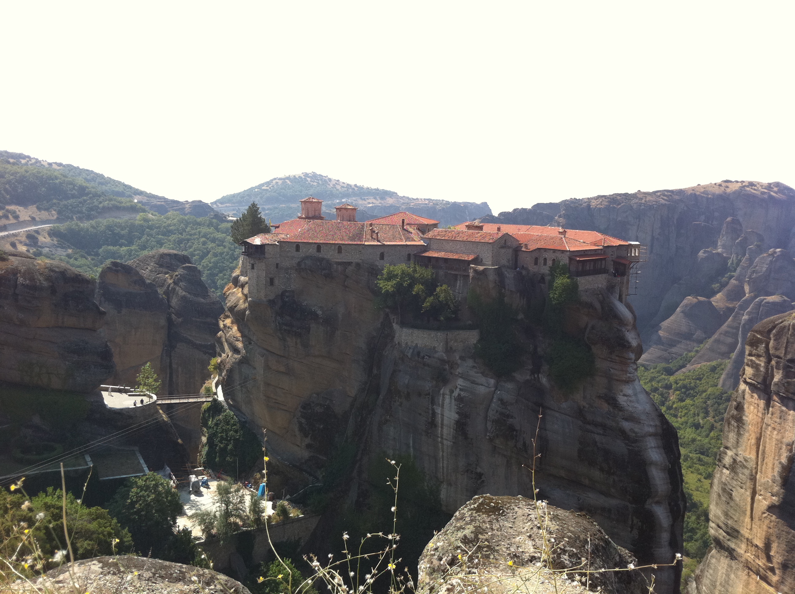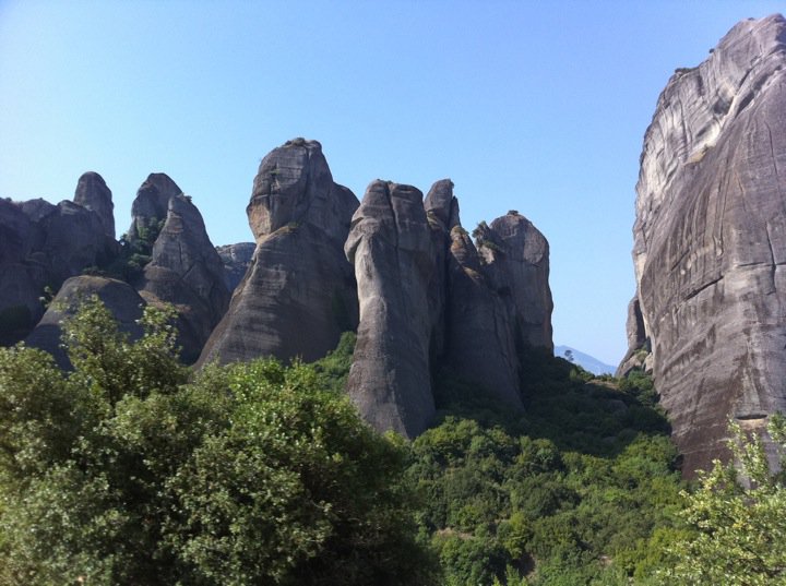 Le nostre vacanze non sono state solo fatte di mare in questi anni. La posizione di Ammoudia permette di visitare anche luoghi di interesse turistico, come Meteora, una famosa località turistica nei pressi della cittadina di Kalambava, nel nord della Grecia, dove dei 24 monasteri ortodossi, eretti con grossi sacrifici sulle falesie di arenaria che si ergono dal terreno ne restano solo sei. Il luogo è stato nominato patrimonio dell’umanità dall’Unesco. I monasteri sono oggi visitabili, a costo di grossa fatica (per salire ai monasteri ci sono un  numero non meglio precisato di gradini da salire, solo uno è in quota…vi consiglio di visitare quello 🙂 )