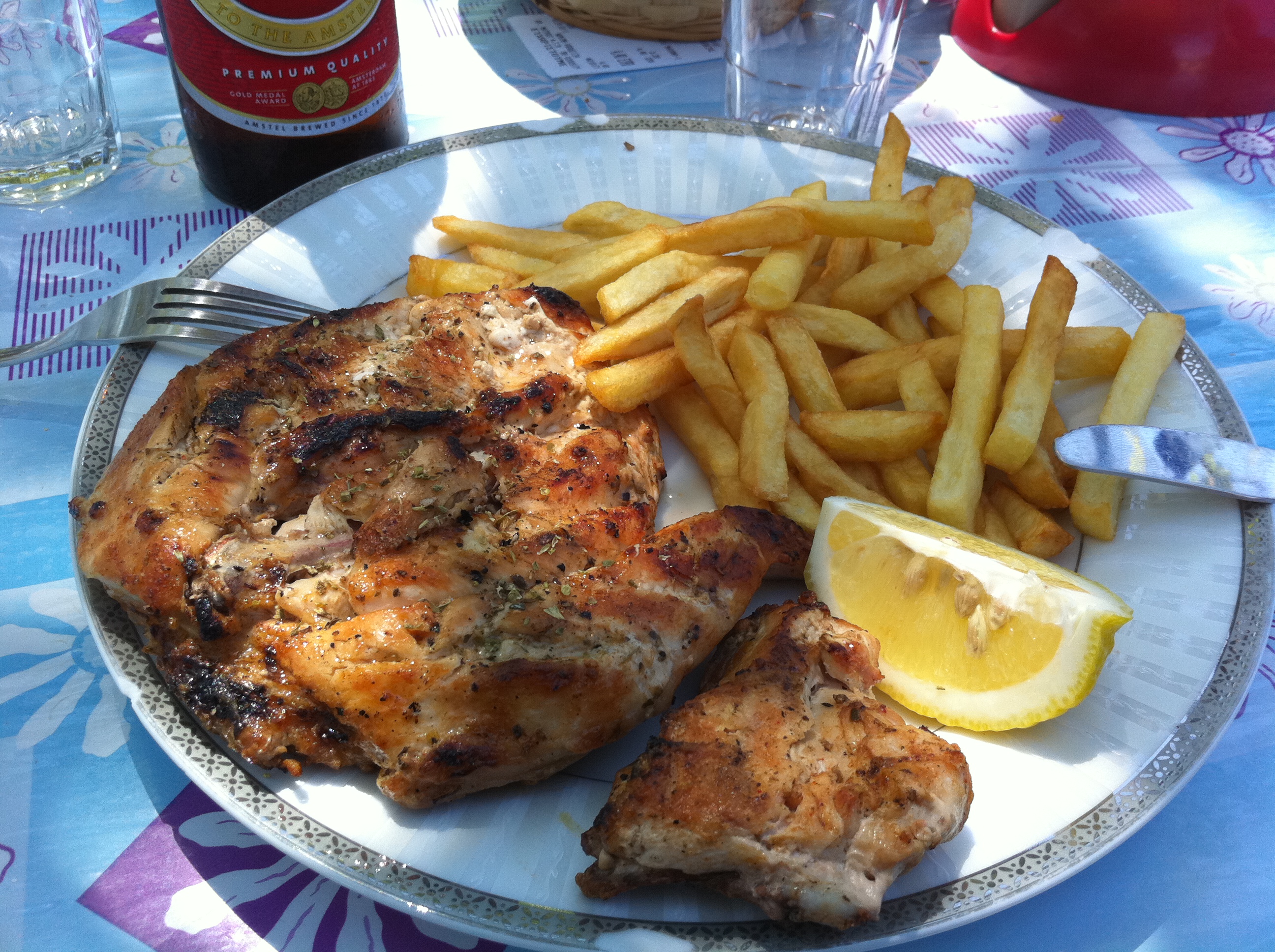 Qui, a mio parere, si può gustare la miglior cucina greca (almeno in zona). Carni e pesci cotti sui bracieri posti all’aperto e curati direttamente la lui, una delle migliori Moussaka mai mangiate, uscite dalle mani della mamma di Laki, un calamaro fritto dal sapore e l’aspetto insolito, un’insalata greca conditissima ma freschissima, dei fagioli che a detta di mio marito sono ottimi (io non li mangio) e piatti di melanzane anche chiamato briami (in realtà il piatto è melanzane, patate, peperoni e cipolla il tutto stufato e condito in abbondanza) che non hanno eguali.