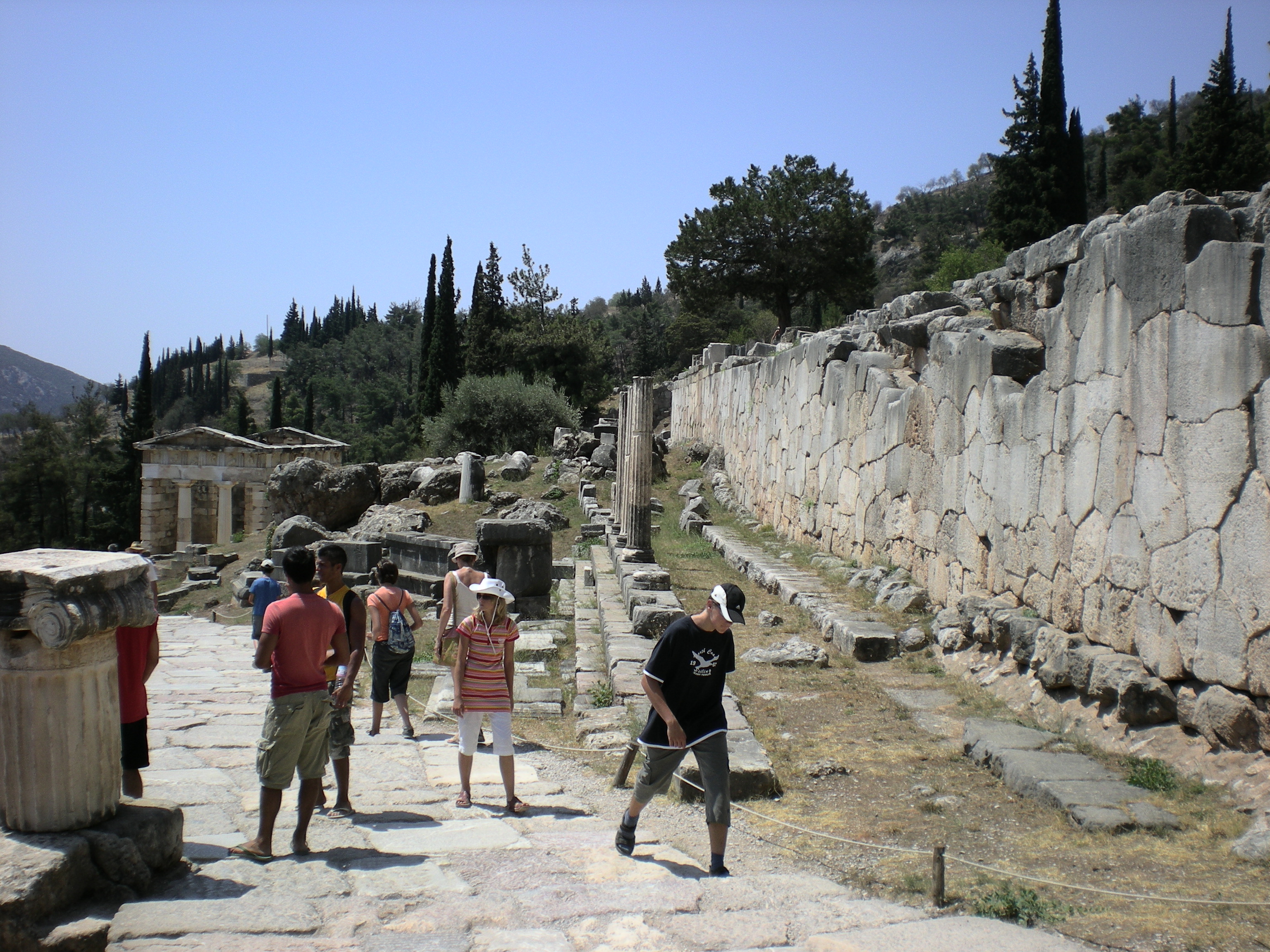 Altro luogo che abbiamo visitato è stato Delphi, importante sito archeologico che si estende sulle pendici del monte Parnaso, nella perifieria della Grecia centrale. Nei tempi antichi Delphi era la sede del più importante e venerato oracolo dei Dio Apollo: l’oracolo di Delfi. Ci sono i resti del tempio dedicato ad Apollo, del famoso teatro e dello stadio. Anche qui, procuratevi una bomboletta di ossigeno…soprattutto ad agosto con 35-36 gradi all’ombra ci vuole (sembra che per i greci se un sito archeologico non è in salita non è tale 🙂 ).