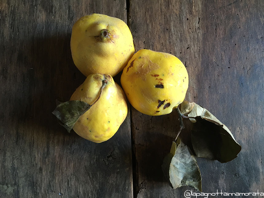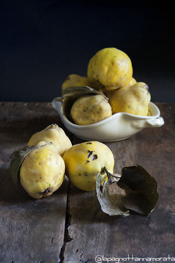 Un paio di giorni fa mio padre, tornando dalla casa in campagna, mi chiama e mi dice di scendere sotto casa. Ferma la macchina e mi consegna una busta piena di mele cotogne che mia zia (sua sorella) mi aveva destinato. Io amo la marmellata di mele cotogne, solo che non è facile trovarla in giro, e non è facile trovare le mele cotogne per cui, appena le ho viste ed accostandole al viso ho sentito il loro dolcissimo odore, ho deciso: confettura sarebbe stata!!