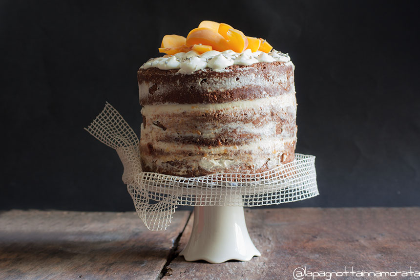 Naked cake alla lavanda, con crema alle pesche gialle e limone